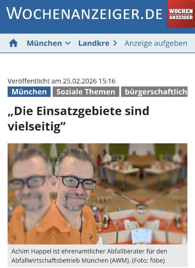 Sie sind hier: Home Presse 25.02.2026 - Wochenanzeiger 12.08.2022 - Münchner Kirchenradio Juni 2021 - Wir über uns 19.11.2019 - Kommunalreferat München (Modell von mir) Juni 2019 - Runnersworld Magazin Juni 2017 - Runnersworld Magazin 02.04.2016 - Abendzeitung 19.12.2015 - Münchner Samstagsblatt 2015 / Ausgabe 40 - WILA Arbeitsmarkt 11.07.2013 - Blog "Grün & Gloria" 08/2012 - Magazin "alverde" 09/2010 - Magazin "alverde" 04.07.2020 - Interview Worldrecord Marathonclimb 06.12.2019 - Müllspiel für den AWM 15.07.2019 - Interview zum B2Run