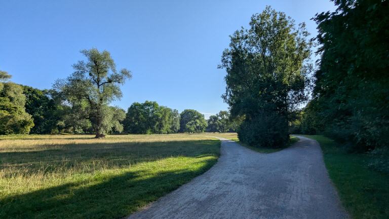 Du startest am Haus der Kunst und läufst einmal gegen den Uhrzeigersinn durch den Englischen Garten. Es handelt sich um einen Rundweg, so daß du wieder am Haus der Kunst ankommst.