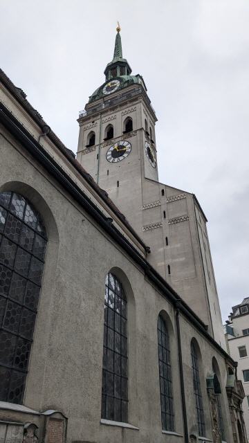 Der "Alte Peter" ist ebenfalls nicht nur eine wunderschöne Kirche und steht auf dem alten Gottesacker, also dem alten Friedhof der Stadt München, er prägt auch als Ensemble mit Marienplatz, Viktualienmarkt und Heilig Geist maßgeblich das Bild Münchens in der ganzen Welt. Der Kirchturm diente früher als Aussichtspunkt für die Feuerwächter der Stadt. Wer hier oben täglich seinen Dienst verrichtete, der war maßgeblich dafür verantwortlich, dass Brandherde im eng bebauten Stadtgebiet frühzeitig erkannt wurden und somit Großbrände verhindert wurden.