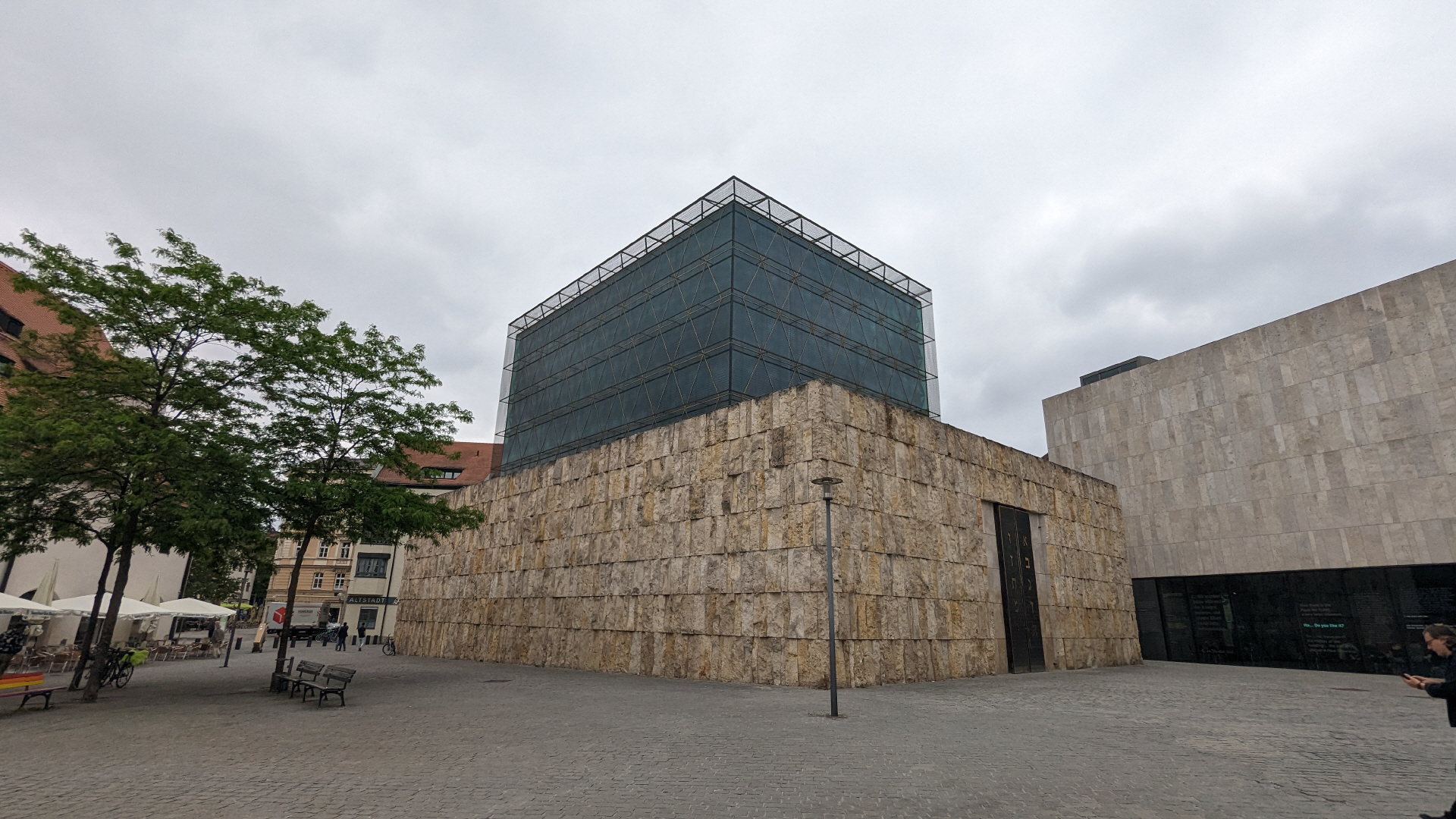 Jüdisches Leben in München hat eine sehr lange Geschichte, das haben auch jüngste Ausgrabungen beim Bau der zweiten S-Bahn-Stammstrecke hinter dem Marienplatz gezeigt, als man alte jüdische Viertel ausgegraben hat. Die relativ neue Ohel-Jakob-Synagoge am St.Jakobsplatz gegenüber des Münchner Stadtmuseums trägt dieser Tradition Rechnung. Der moderne Bau sticht architektonisch auffallend heraus mit seiner gigantischen, verhältnismäßig schmucklosen Würfelform. Wer das Innere sehen möchte muss sich entweder zu den Gebetszeiten einfinden oder sich mit Bildern aus dem Internet begnügen. Für einen Besuch der Synagoge bitte an die dortigen Regeln halten und nachfragen, was erlaubt ist. Da sich direkt nebenan weitere jüdische Einrichtungen wie Museum, Kindergarten und Restaurant befinden, stehen Sicherheitsbeamte immer vor Ort.