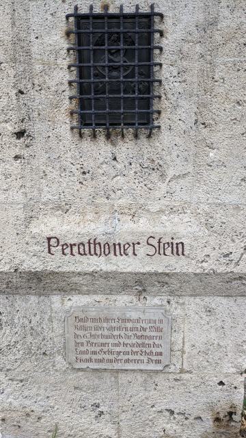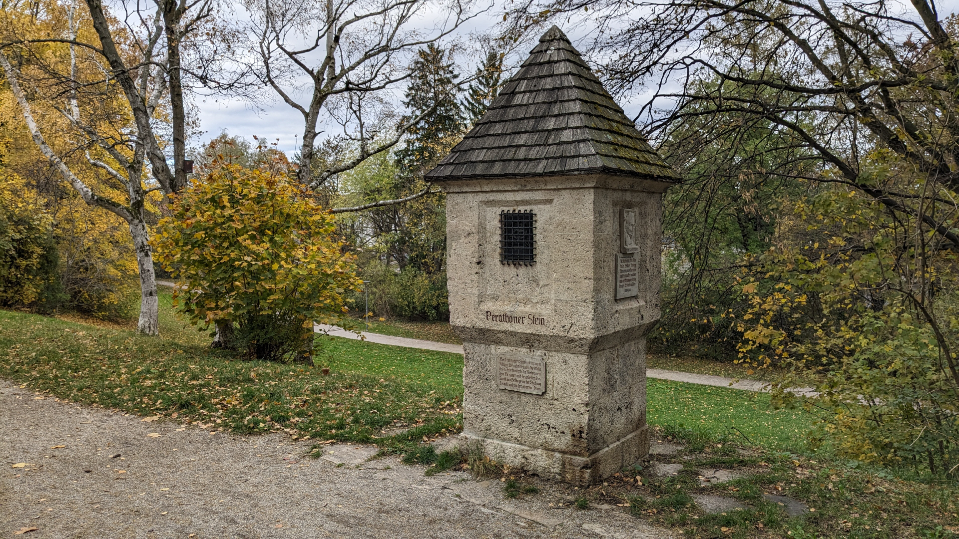 Unweit der Emmauskirche findet sich der Perathoner Stein am Rande des Tiroler Platzes. Der Perathoner Stein soll an den aus Südtirol geflohenen ehemaligen Bürgermeister von Bozen, Julius Perathoner, erinnern. Nach der Machtergreifung durch Mussolini wurde er zusammen mit dem Bozener Stadtrat abgesetzt und musste fliehen. Ebenfalls abgebildet auf den unterschiedlichen Seiten des Gedenksteins sind der heilige Josef, Schutzpatron von Tirol, der heilige Korbinian und die heilige Maria, Schutzpatronin der Bayern.