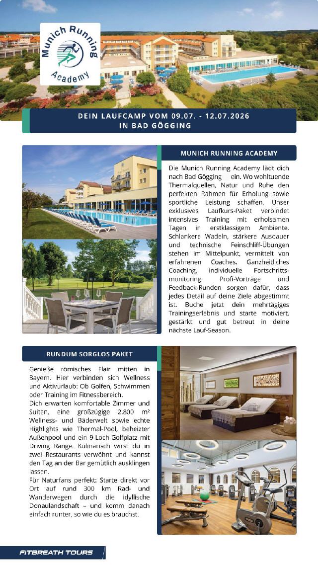 Geh mit uns auf Laufreise nach Bad Gögging. 4 Tage Lauf-Retreat mit Trainern, Trainingsprogramm und Vorträgen.